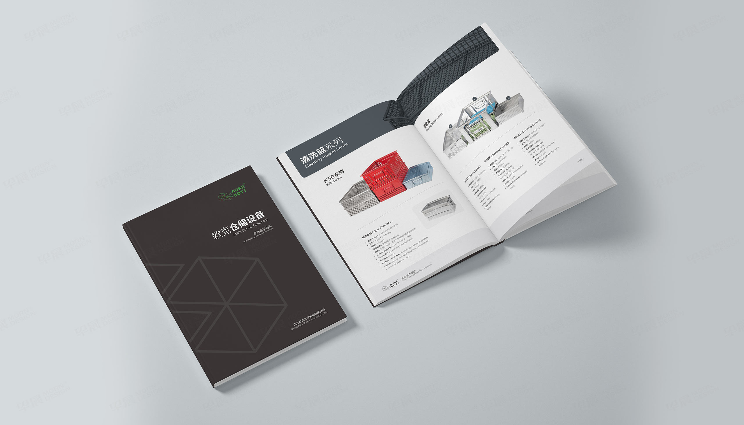歐克倉儲設備畫冊設計和設備產品三維渲染圖片制作。這份產品冊的設計完全拋棄了原來拍攝照片做冊子的途徑,直接三維渲染產品圖片。