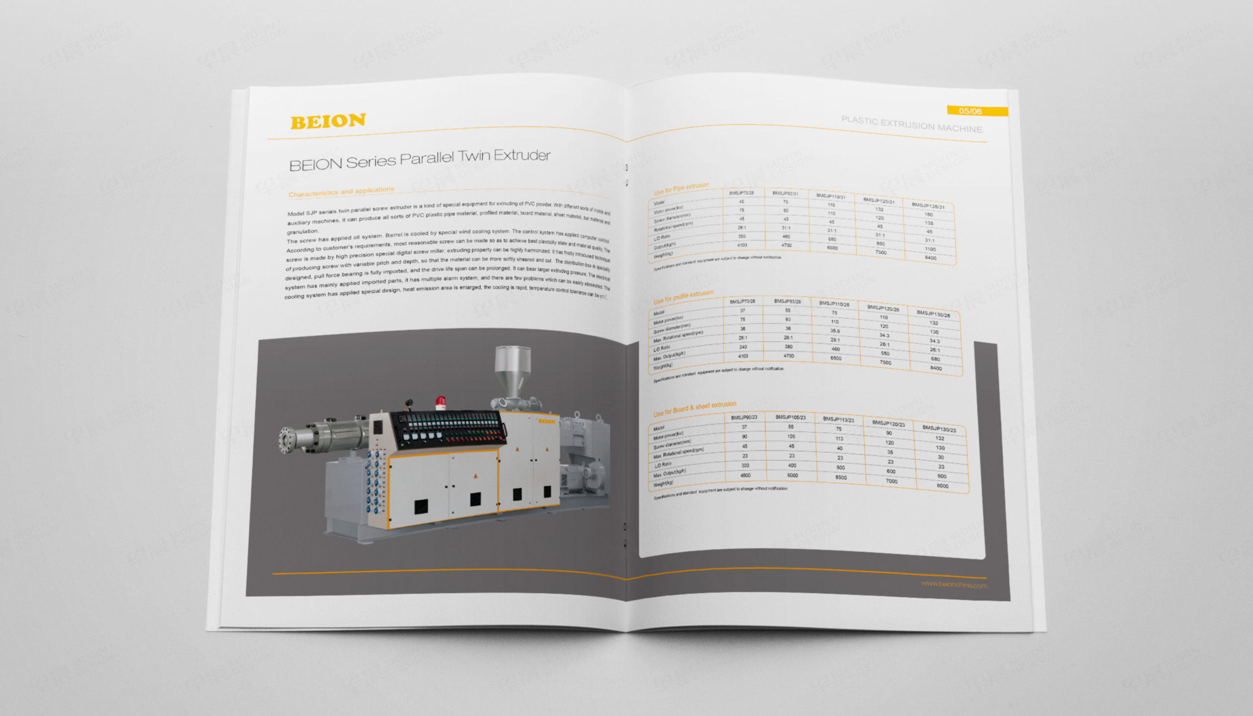 【貝昂機械樣本設計/宣傳冊設計】整個樣本設計簡潔無任何修飾。但是,在顏色的配色上面,貝昂強調了機器的色調和設計的主色調保持一致,在塑料擠出機行業采用了大膽的橙色,使整個畫冊看起來耳目一新,連歐洲客戶都認可該畫冊的設計風格。早晨設計是高端的張家港,江陰,太倉,昆山,常熟,蘇州,無錫,靖江,南通,如皋,靖江,海門,宜興樣本設計、畫冊設計、制作和印刷公司,提供策劃-文案-攝影-修圖-設計-印刷的整合宣傳冊設計制作服務,并提供免費樣本設計咨詢。