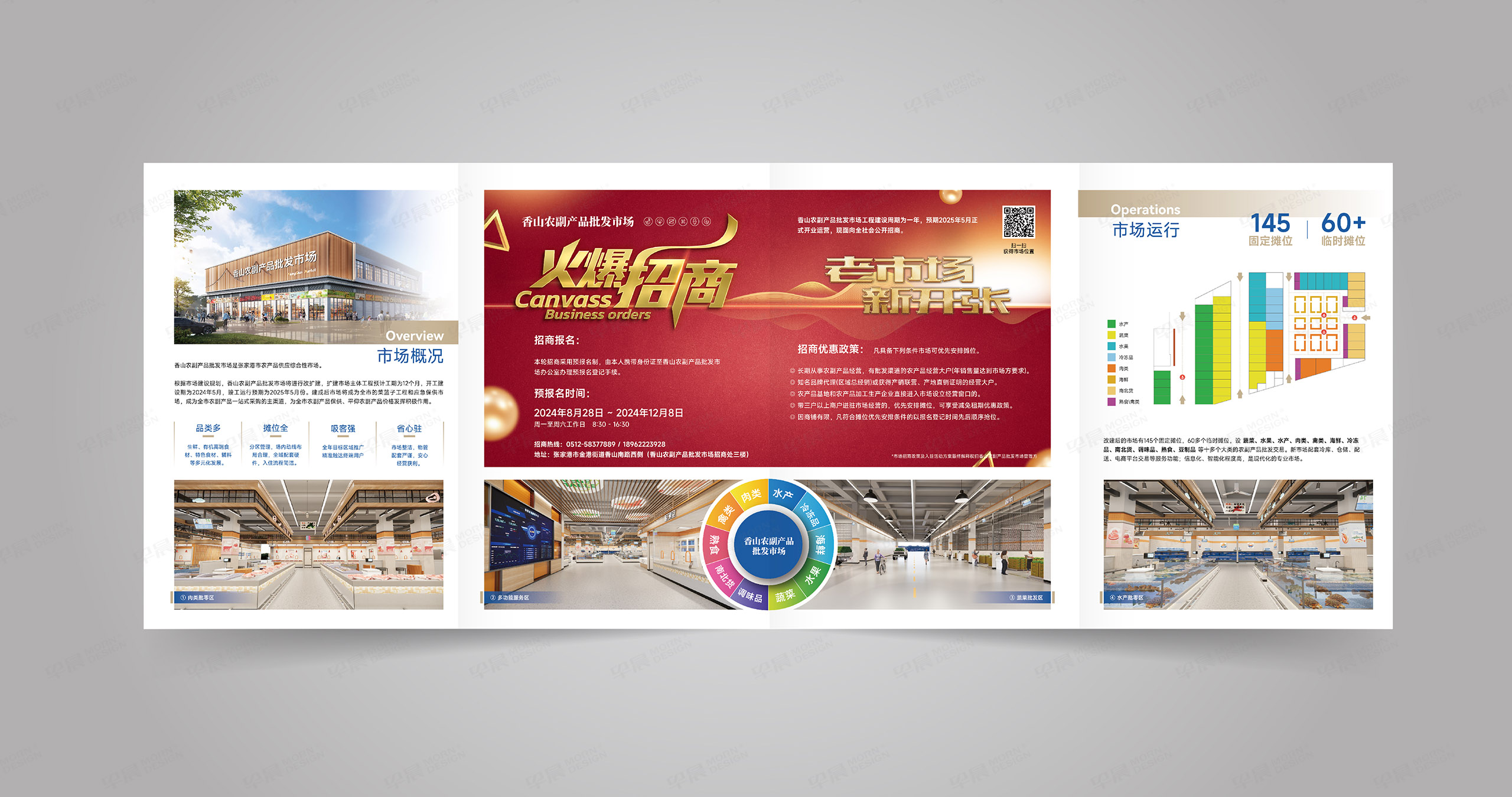 從招商手冊設計,有序全面鋪開招商,誠邀農副產品產銷商、批發商、品牌商戶入駐!共享龐大消費市場與成熟供應鏈資源,攜手打造區域農貿標桿,共創財富新機遇。香山農副產品批發市場,與您并肩深耕民生賽道,共贏商業未來!