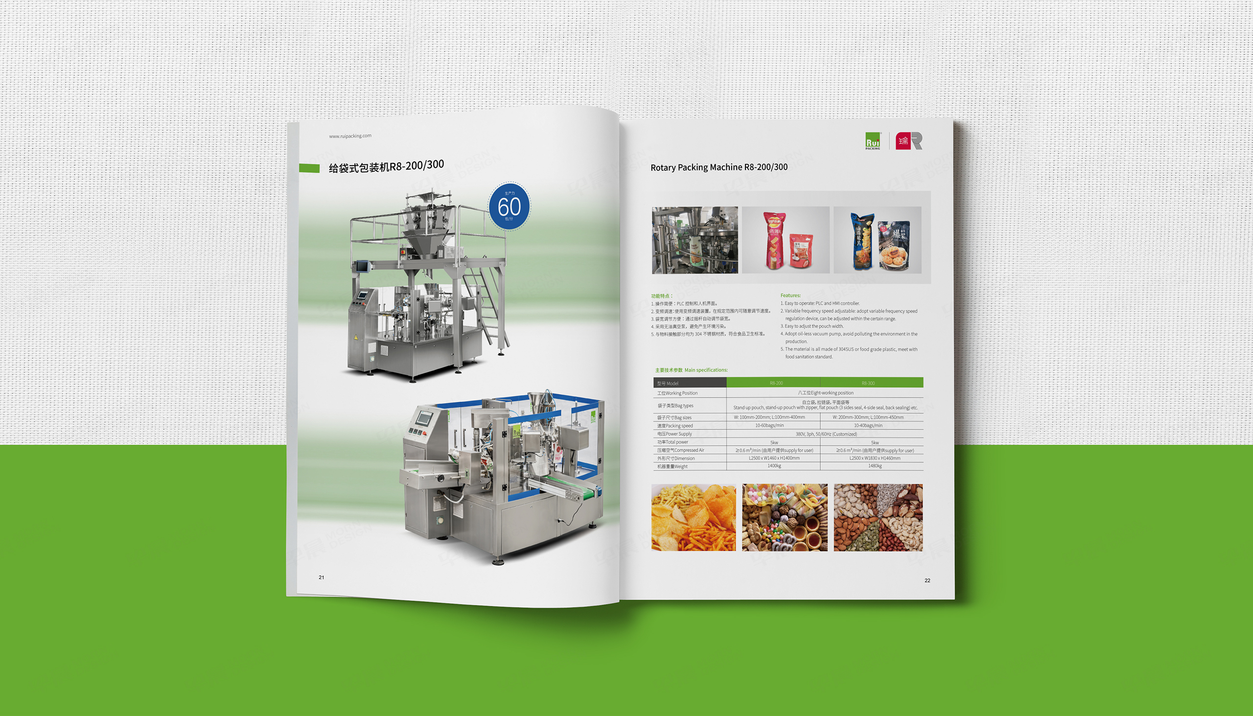 【瑞派克樣本設計/產品冊設計制作】瑞派克在薄膜袋包裝機械行業處于一梯隊企業。對于原先在上海設計的產品冊,感到已經不符合昆山新工廠的實際定位。早晨設計針對不銹鋼外觀的設備拍攝和后期上面做了細致的后期,在設計上面采用了企業標準色綠色,及一點玫紅色作為對比色。整體產品冊設計風格偏向清爽,包裝機械版面簡潔,易讀。早晨設計是高端的張家港,江陰,太倉,昆山,常熟,蘇州,無錫,靖江,南通,如皋,靖江,海門,宜興樣本設計、畫冊設計、制作和印刷公司,提供免費畫冊設計印刷咨詢。