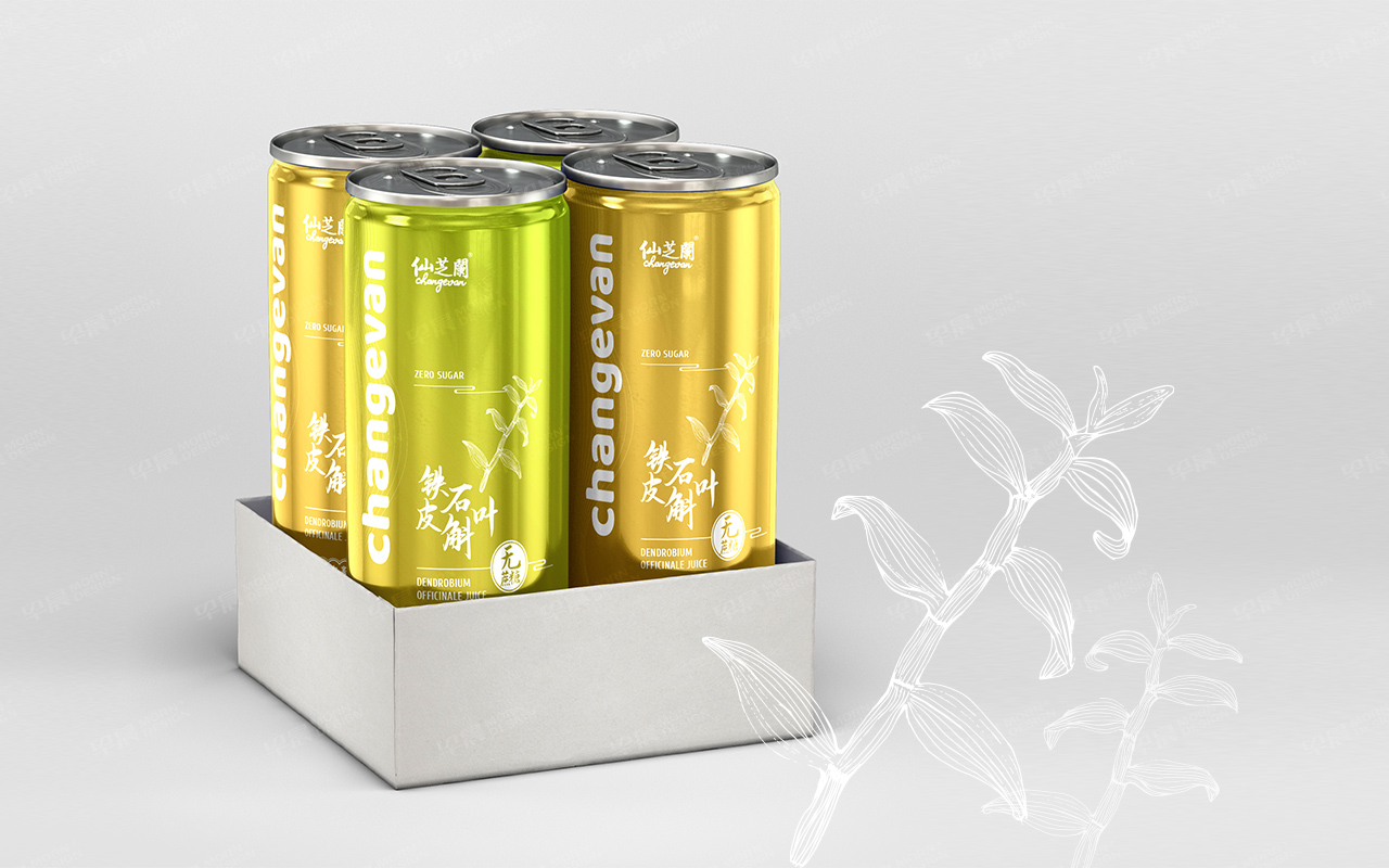 仙芝蘭鐵皮石斛飲料包裝設計,易拉罐包裝設計。包裝設計采用簡潔的中式風格設計,讓更年輕的人群更易喜歡和接受。