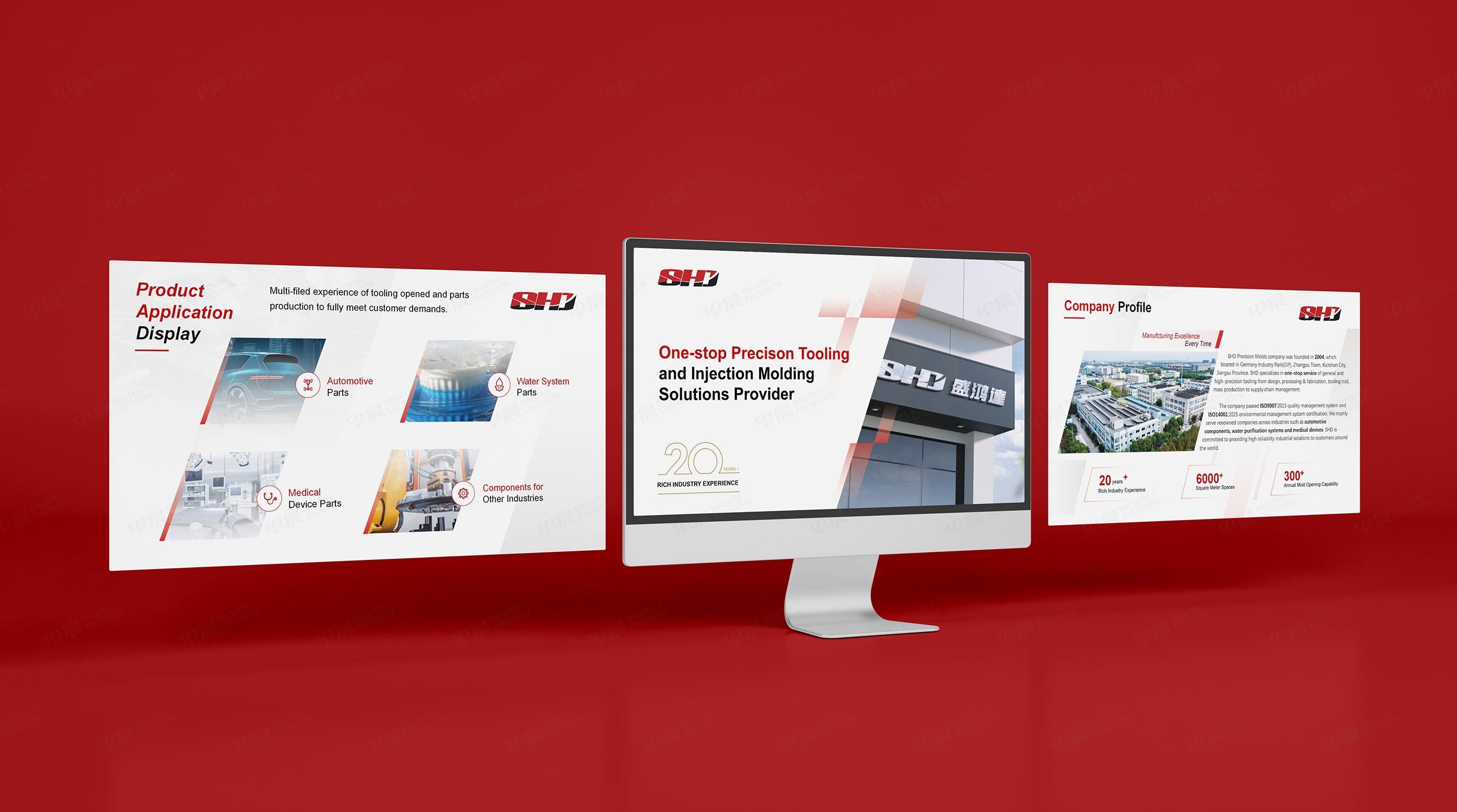 中期以"模塊化設計"提升效率,將30頁PPT拆解為封面/技術圖譜/生產流程等5大視覺單元,運用三維建模呈現模具剖面動態解析,可以見盛鴻達官網設計;