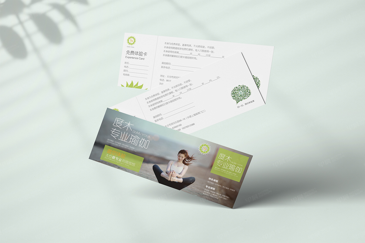 【度木專業瑜伽海報/免費體驗卡】在理解客戶的要求之后,進行的海報與體驗卡設計。早晨設計是蘇州,無錫,常州,南通,泰州,張家港,江陰,太倉,昆山,常熟,靖江,南通,如皋,海安,宜興地區高端的海報設計,招貼設計,體驗券設計制作公司。免費提供海報設計,免費卡檢驗卡咨詢。